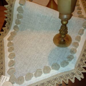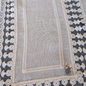 Gli elegantissimi centritavola Alloro sono prodotti unici e senza tempo. Tutti rigorosamente in tessuto naturale e sempre impreziositi da un tocco speciale: i ricami, i pizzi e le applicazioni sono tutti fatti a mano. Ideati per risplendere sulla tua tavola indipendentemente dallo stile d’arredo.